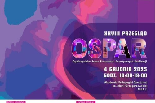 Zbliża się XXVIII Ogólnopolska Scena Prezentacji Artystycznych Realizacji (OSPAR 2025). Przegląd odbędzie się 4 grudnia w Akademii Pedagogiki Specjalnej im. Marii Grzegorzewskiej…