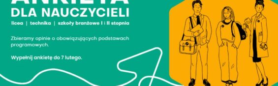 Instytut Badań Edukacyjnych uruchomił ankietę dla nauczycieli i nauczycielek na temat obowiązujących podstaw programowych w liceach, technikach i szkołach branżowych. Ankietę można wypełnić do 7 lutego. Zebrane opinie pomogą w pracach nad projektami nowych podstaw programowych dla szkół ponadpodstawowych.
