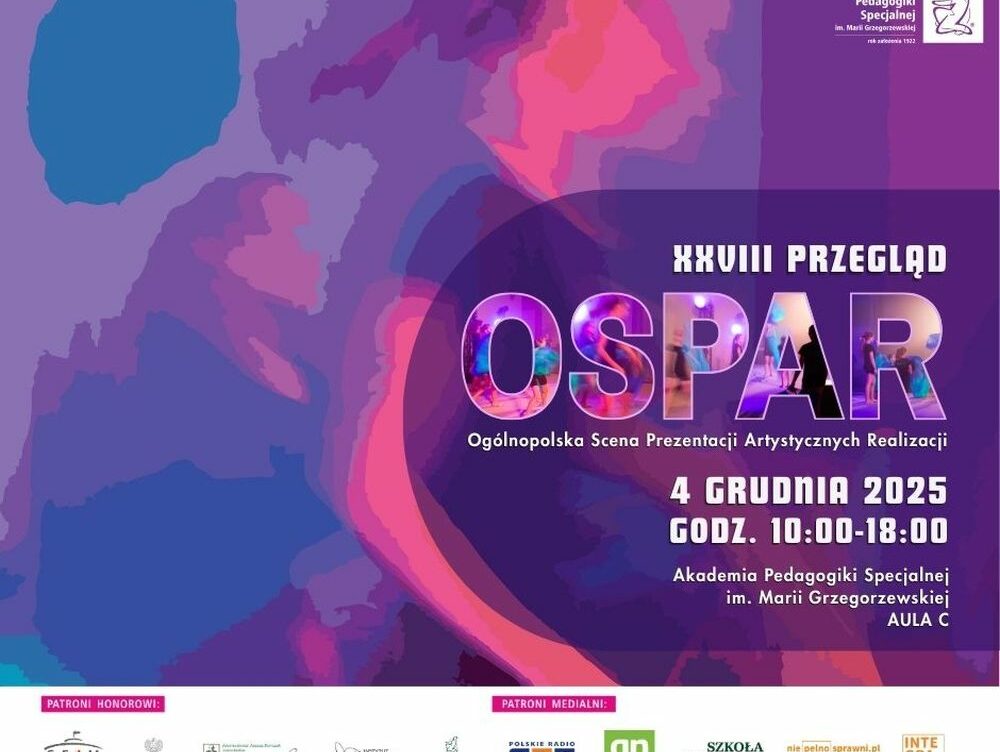 Zbliża się XXVIII Ogólnopolska Scena Prezentacji Artystycznych Realizacji (OSPAR 2025). Przegląd odbędzie się 4 grudnia w Akademii Pedagogiki Specjalnej im. Marii Grzegorzewskiej w Warszawie (od godziny 10.00 do 18.00). Głos Nauczycielski jak co roku sprawuje patronat medialny nad wydarzeniem.