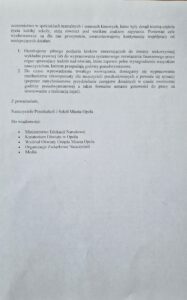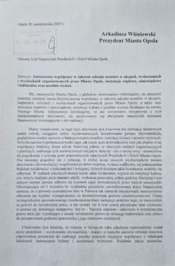 List trafił już do prezydenta Arkadiusza Wiśniewskiego oraz Barbary Kamińskiej, przewodniczącej Rady Miasta. Ma też zostać przekazany Ministerstwu Edukacji Narodowej, Kuratorium Oświaty w Opolu, Wydziałowi Oświaty oraz organizacjom związkowym.