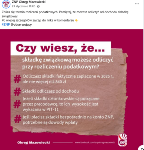 Więcej informacji na temat składek na rzecz związków zawodowych PIT można znaleźć tutaj