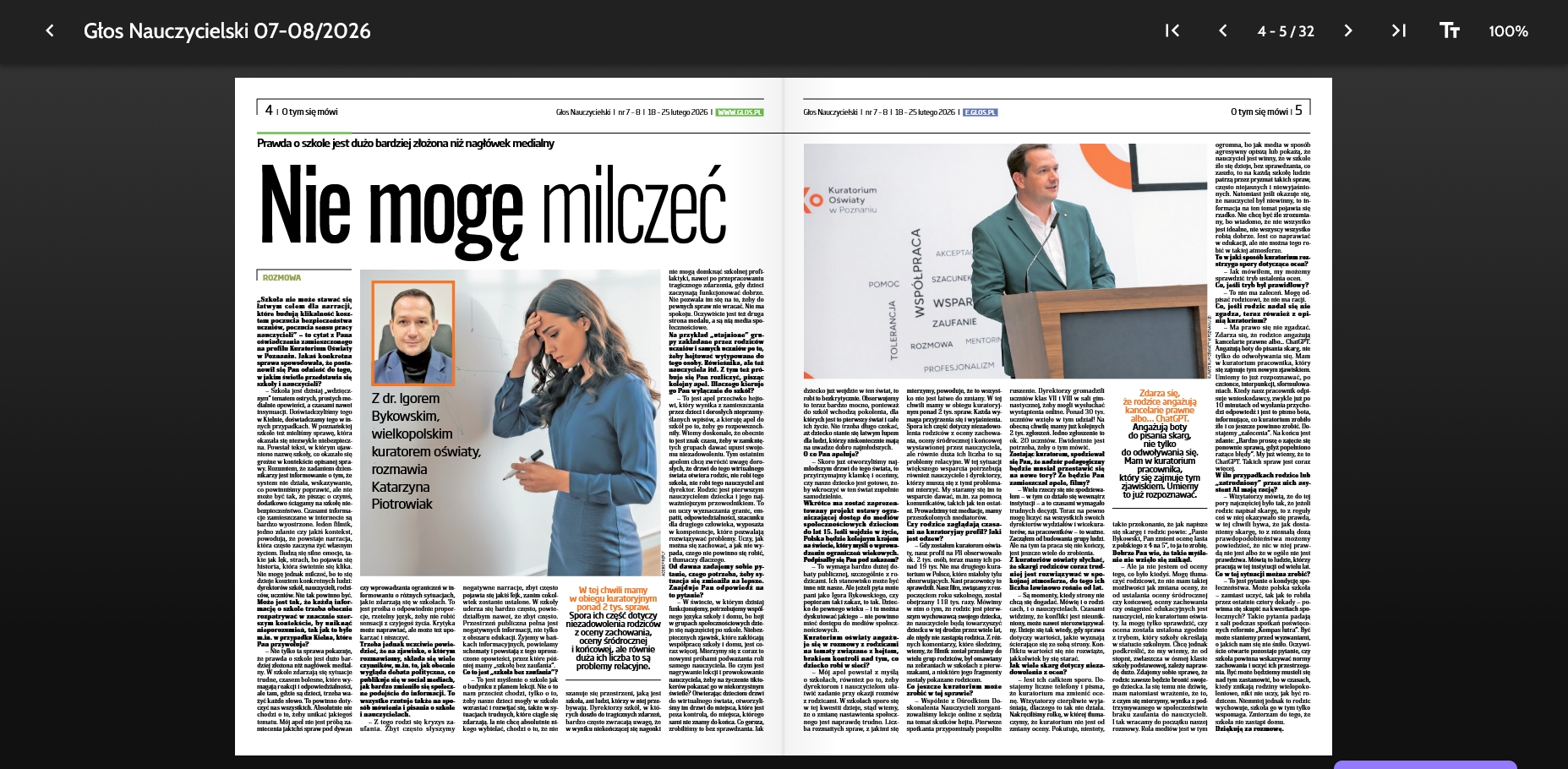 To jest tylko krótki fragment wywiadu opublikowanego w Głosie Nauczycielskim nr 7-8 z 18-25 lutego 2026 r. Całość – w Głosie Nauczycielskim (wydanie drukowane i elektroniczne)