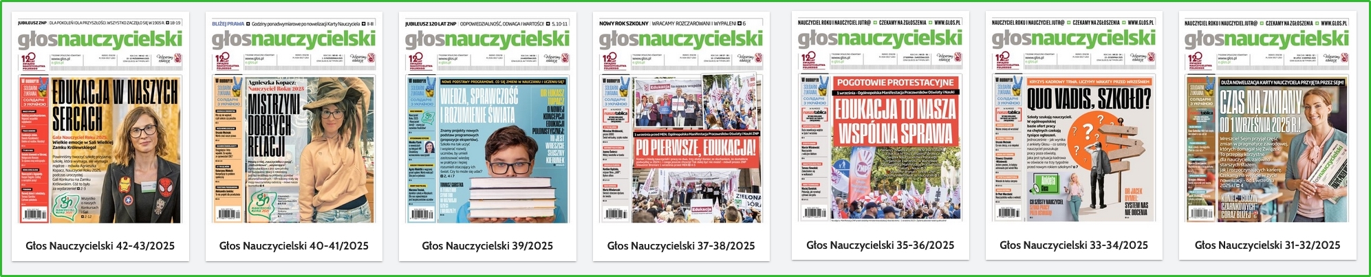 Drodzy nauczyciele, dyrektorzy, związkowcy, przedstawiciele samorządów! Porady z zakresy prawa oświatowego oraz awansu zawodowego, aktualności oświatowe, niezależne opinie, komentarze i analizy, a także publikacje poświęcone historii polskiej oświaty i Związku znajdziecie tylko w Głosie Nauczycielskim. Prenumeratę na 2026 r. można zamawiać także w naszej redakcji (przy pomocy formularza zamówień - TUTAJ lub mailowo - na adres [email protected]). Ogniwom ZNP oferujemy Głos w pakietach! Polecamy wydanie elektroniczne!