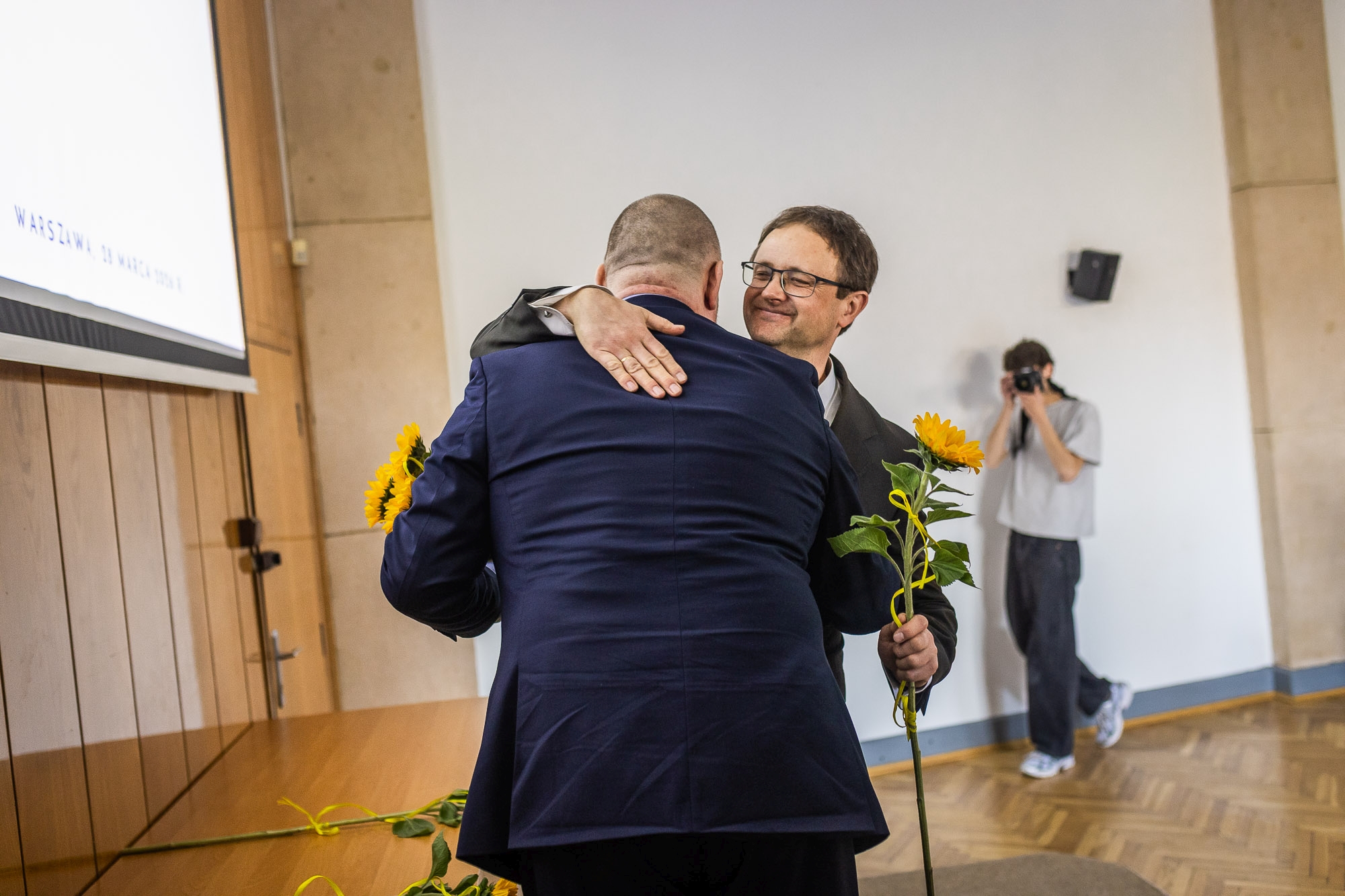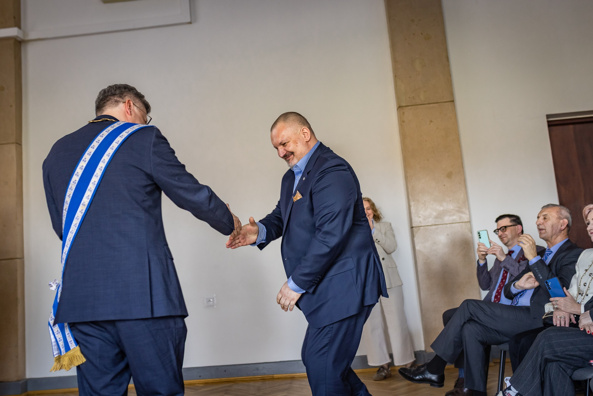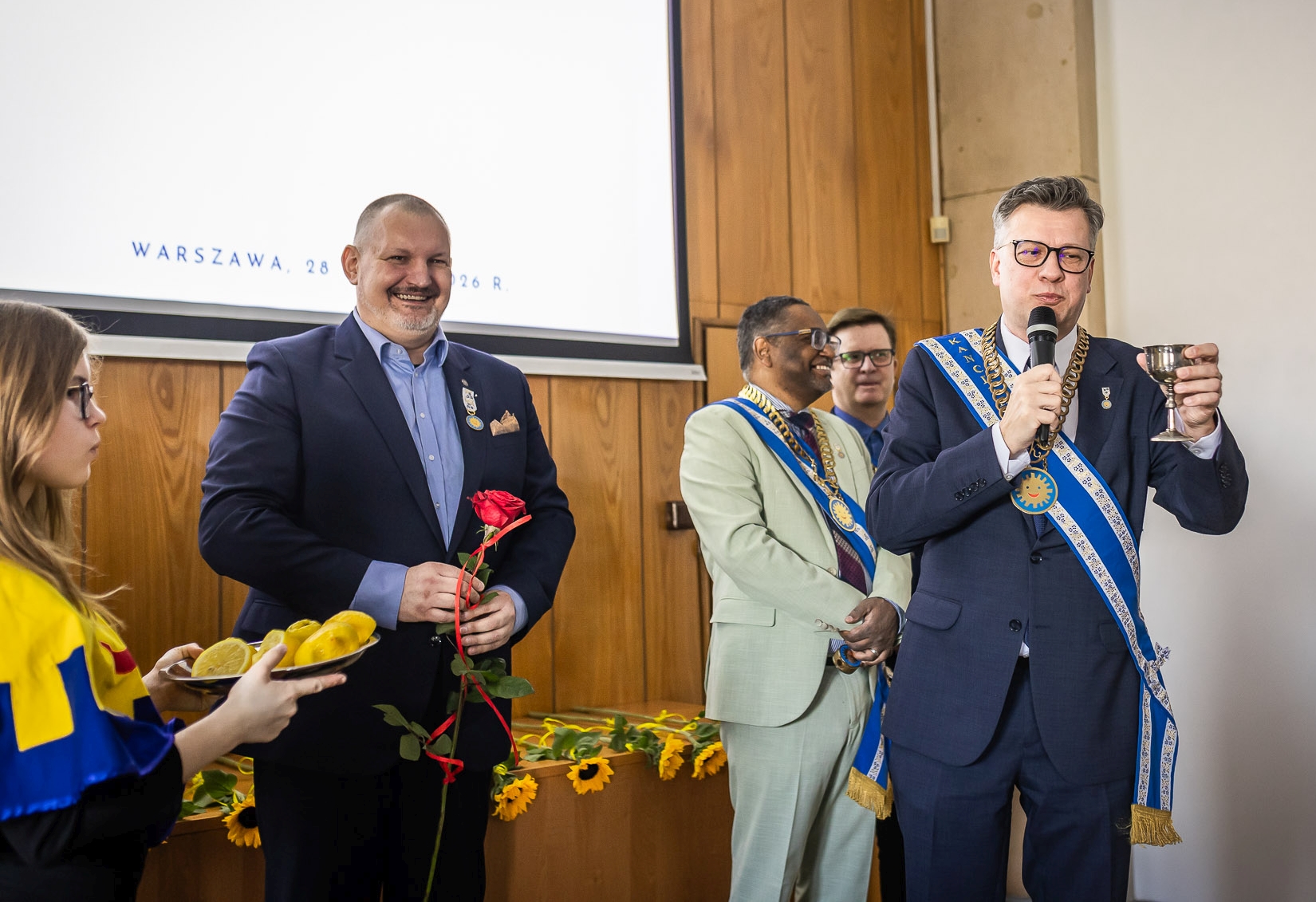 Było tradycyjne picie soku z cytryny, wyciśniętego przez dzieci, były łzy wzruszenia, podziękowania i gratulacje. Składali je Kawalerowi Orderu Uśmiechu jego goście, którzy licznie przybyli 28 marca do sali kolumnowej siedziby ZG ZNP. Po raz pierwszy w historii do grona odznaczonych najbardziej słonecznym z orderów dołączył Nauczyciel Roku i chyba po raz pierwszy taki ceremoniał odbył się w gmachu przy ul. Juliana Smulikowskiego. Gmach ten od blisko 100 lat służy nauczycielom, ale takiego wydarzenia jeszcze nie gościł! Uroczystość pasowania Radosława Potraca na 1096 Kawalera Orderu Uśmiechu zorganizowali Nauczyciele Roku oraz Głos Nauczycielski.