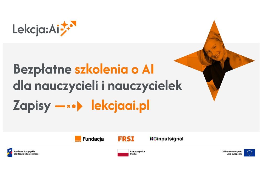 Trwają zapisy do projektu „Lekcja:AI”. To cykl bezpłatnych szkoleń o sztucznej inteligencji dla nauczycieli i nauczycielek. Dostosowane są do ich potrzeb i specyfiki zawodu – niezależnie od przedmiotu, którego uczą. Do czerwca 2027 r. udział w nich weźmie co najmniej 11 tys. osób – informuje Fundacja Orange.