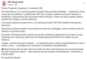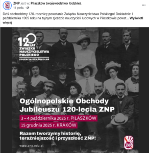 Dokładnie 1 października 1905 roku na tajnym zjeździe nauczycieli ludowych w Pilaszkowie powstał związek, który założyli nauczyciele walczący o prawo do nauki w języku polskim i niezależność edukacji w okresie zaborów. W ten sposób 120 lat temu zrodziła się organizacja, która stała się zalążkiem Związku Nauczycielstwa Polskiego. W dniach 3-4 października 2025 r. w kolebce ZNP, czyli właśnie Pilaszkowie koło Łowicza oraz w pobliskim Strykowie odbędą się ogólnopolskie obchody Jubileuszu 120-lecia Związku Nauczycielstwa Polskiego.