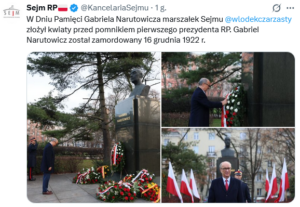 „Śmierć pierwszego prezydenta niewątpliwie była efektem toczącego się wówczas sporu politycznego, podczas którego rozbudzone zostały negatywne emocje – merytoryczny dyskurs zastąpiła nienawiść” – czytamy m.in. w uchwale Sejmu z dnia 5 grudnia 2025 r. w sprawie ustanowienia Dnia Pamięci Prezydenta Gabriela Narutowicza. We wtorek 16 grudnia mija 103 lata od zabójstwa pierwszego prezydenta Rzeczpospolitej.