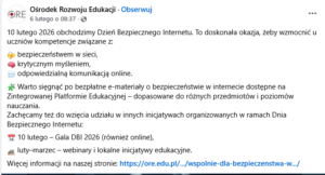 Szczegółowe informacje, harmonogram oraz materiały edukacyjne dostępne są na stronie Dnia Bezpiecznego Internetu. Komunikat MEN można znaleźć tutaj