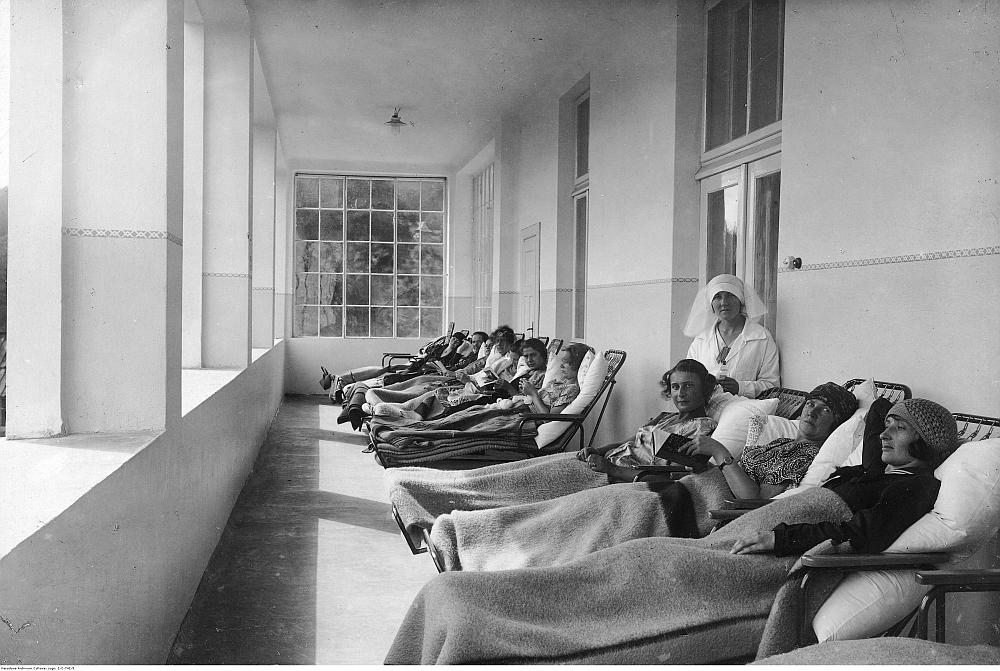 Na zdjęciu: Kuracjuszki na tarasie Sanatorium Związku Polskiego Nauczycielstwa Szkół Powszechnych w Zakopanem, lata 1926-1930 (fot. NAC)