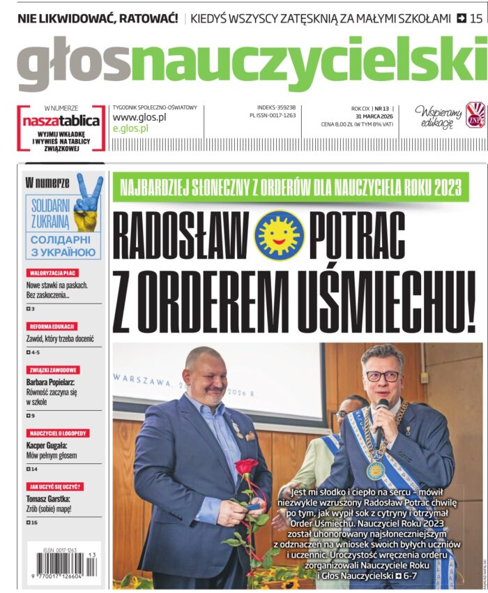 Jest mi słodko i ciepło na sercu – mówił niezwykle wzruszony Radosław Potrac chwilę po tym, jak wypił sok z cytryny i otrzymał Order Uśmiechu. Nauczyciel Roku 2023 został uhonorowany najsłoneczniejszym z odznaczeń na wniosek swoich byłych uczniów i uczennic. Uroczystość wręczenia orderu zorganizowali Nauczyciele Roku i Głos Nauczycielski!