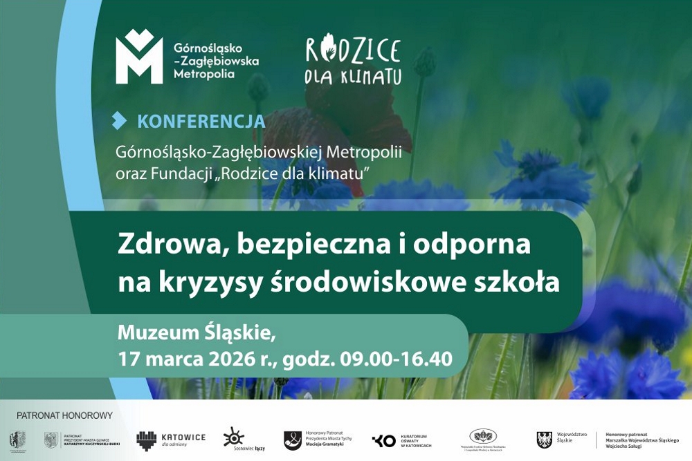 17 marca 2026 roku w Muzeum Śląskim w Katowicach odbędzie się konferencja „Zdrowa, bezpieczna i odporna na kryzysy środowiskowe szkoła”, organizowana przez Górnośląsko‑Zagłębiowską Metropolię i Fundację „Rodzice dla Klimatu”. Wydarzenie zgromadzi około 300 uczestników: dyrektorów szkół, nauczycieli, przedstawicieli samorządów, administracji publicznej oraz organizacji społecznych zaangażowanych w edukację, zdrowie i ochronę środowiska. Obecni będą także przedstawiciele Rad Rodziców z placówek z terenu Metropolii.
